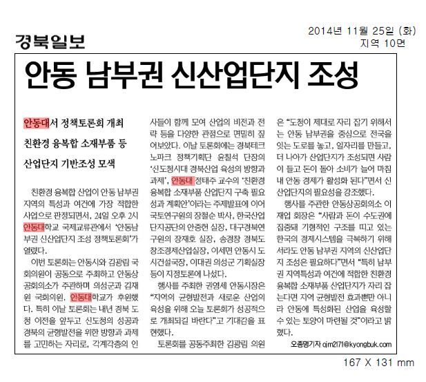 (2014.11) 안동 남부권 신산업단지 조성 정책토론회 매체 보도자료 (안동MBC, KBS)